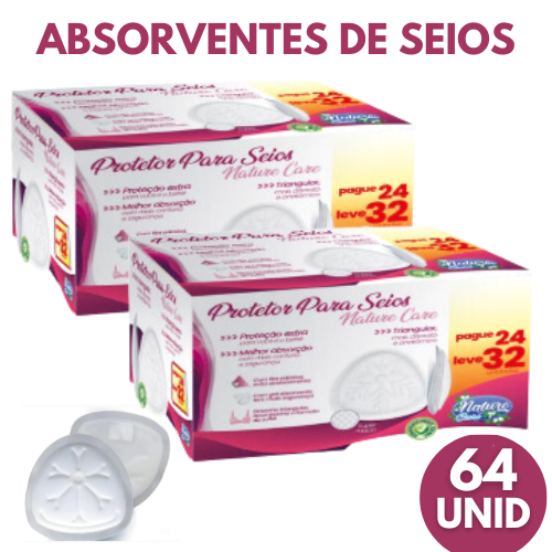 Comprar na ShopeeKit 2 Caixas Absorvente Protetor de Seio Natural Care+ C/64 UN (Cada CX Com 32 Un) Toque Macio