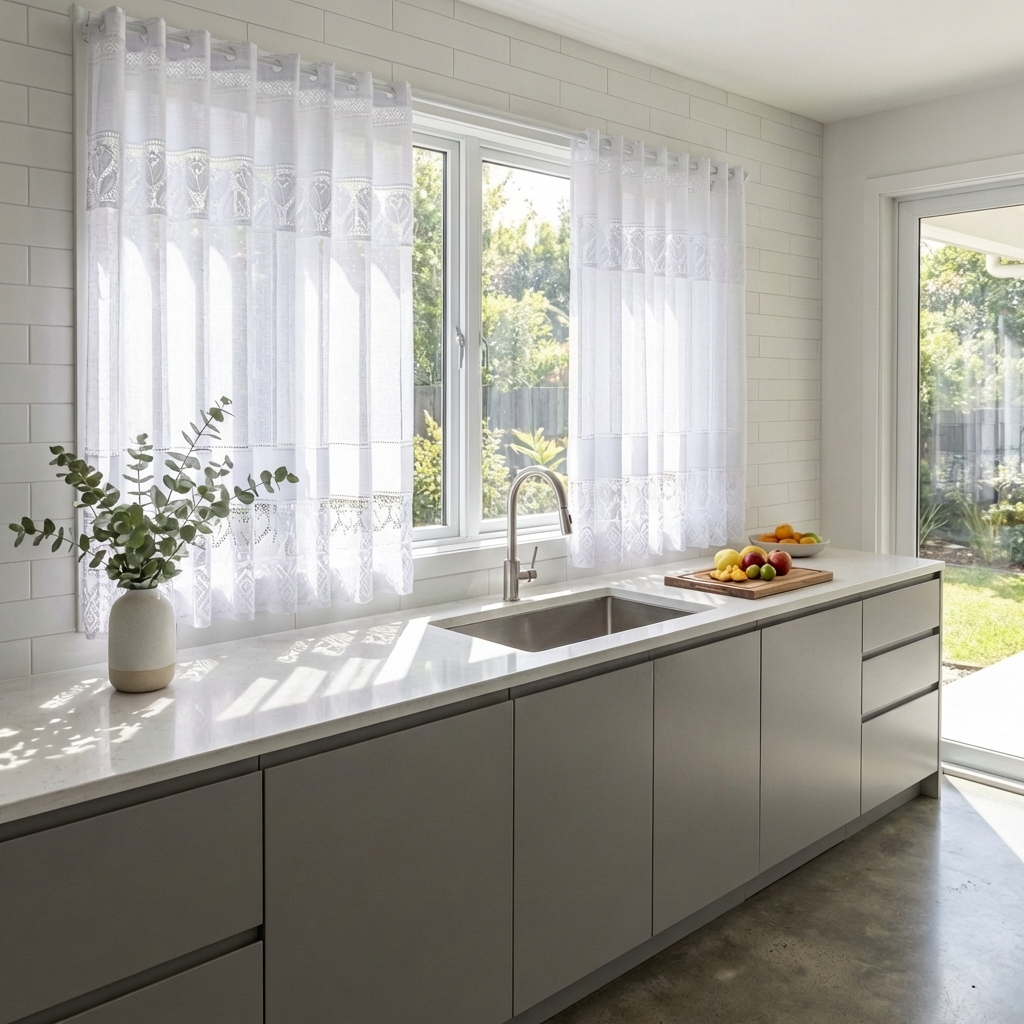 Comprar na ShopeeCortina Cozinha Renda Tulipa Branca com bando 1,20m x 2,20m