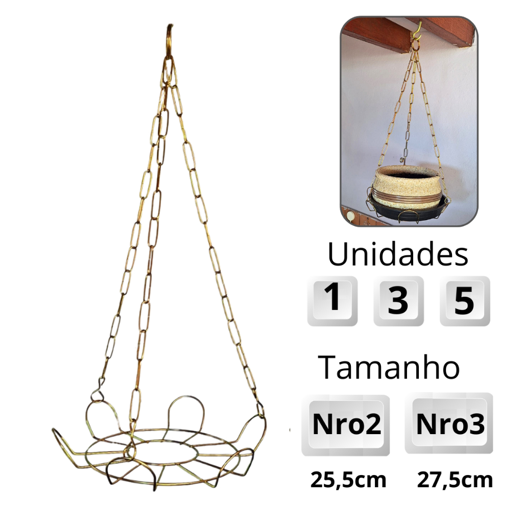 Comprar na Shopee1,3 ou 5un. Suporte Margarida Suspensa Nro. 2 ou 3, com Corrente para Pendurar Vaso de Plantas na Parede