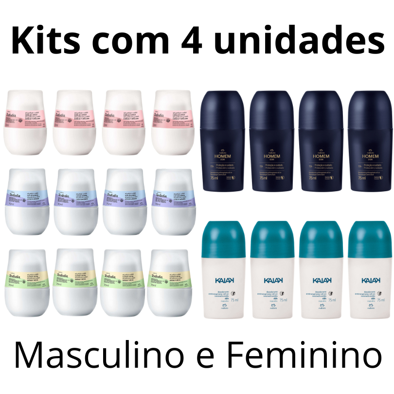 Comprar na ShopeeProduto Kit com 4 Desodorante Antitranspirante Roll-on Natura - Masculino e Feminino - 4 x 70 mL