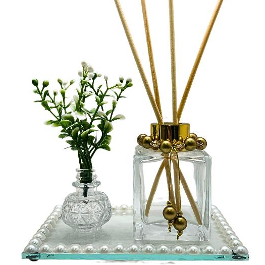 01 Frasco Difusor de Aromas Ametista 100ml Com Bandeja Decorada e Vaso Com Matinho