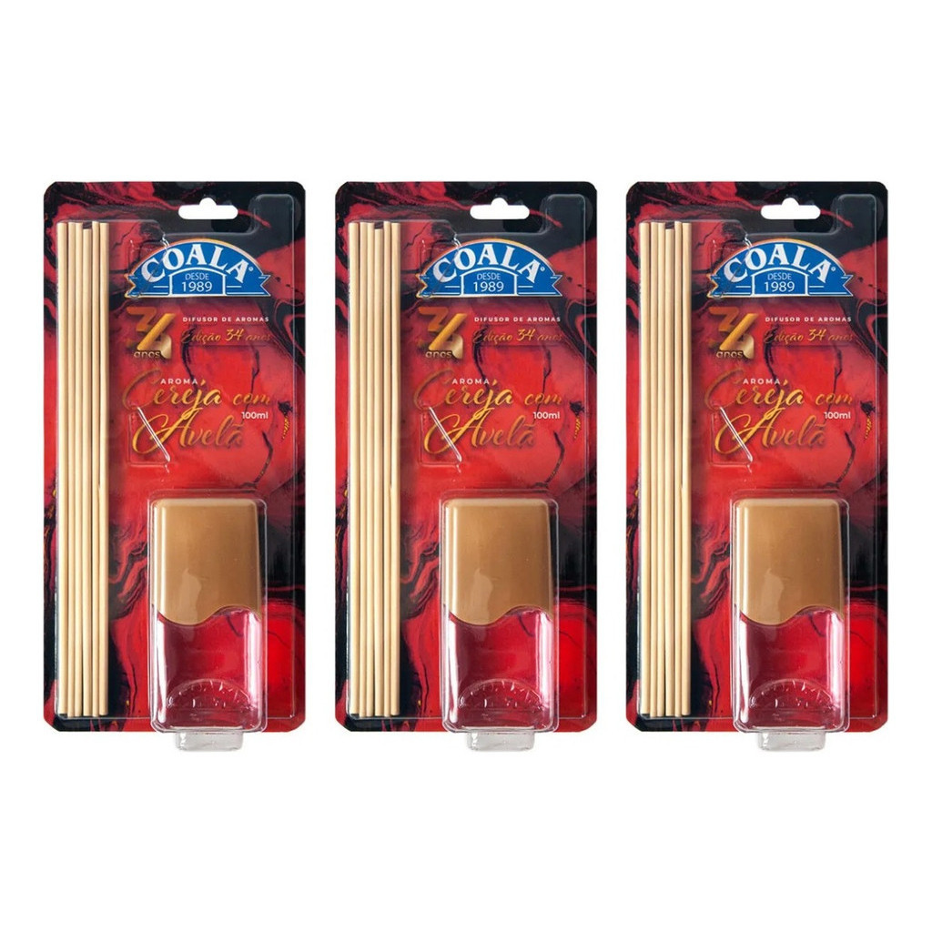 Kit 3 Coala Difusor de Aromas e Ambientes Cereja com Avelã 100ML - Com Varetas - Perfumado
