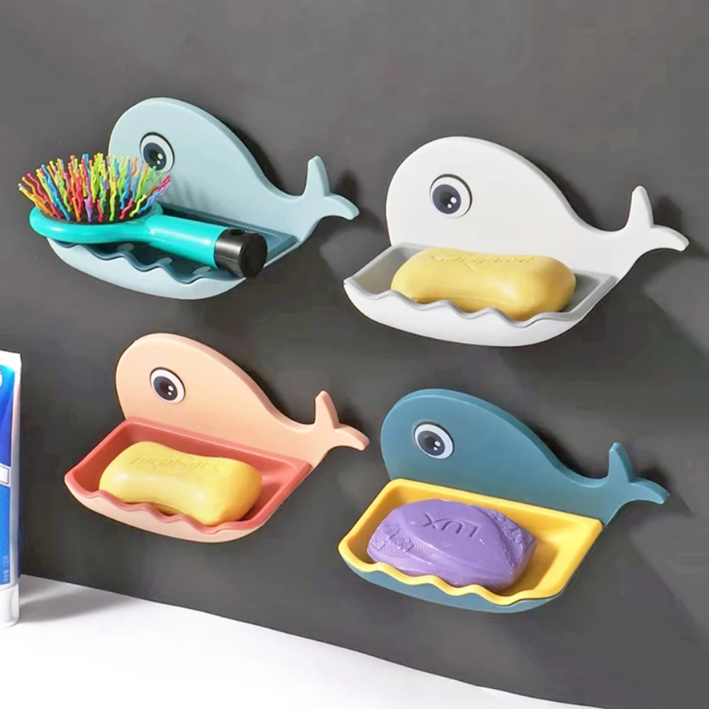 Kit Com 2 Saboneteiras De Parede Fofa Baleia Dupla Face Camada Dupla