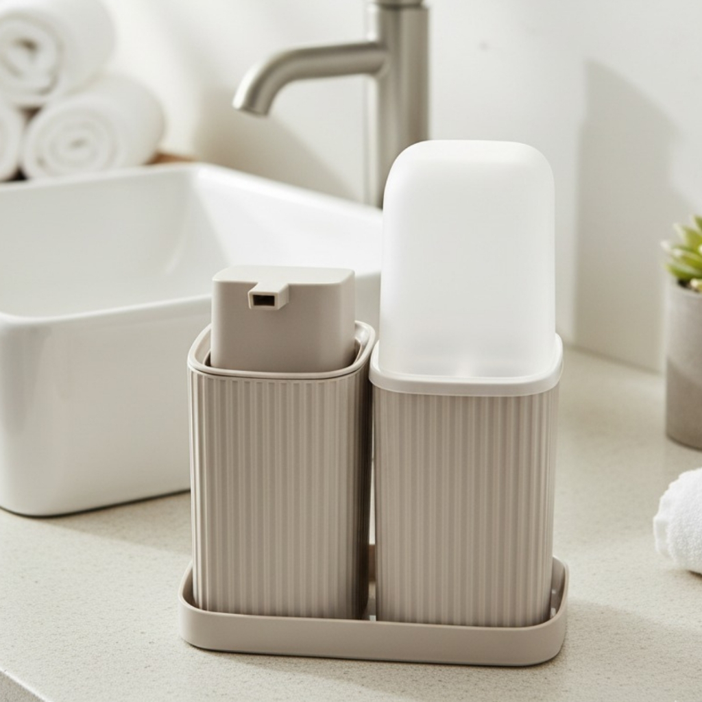 Kit 2 Acessórios Banheiro com Bandeja Dispenser Sabonete Líquido e Porta Escovas - Usual Utilidades