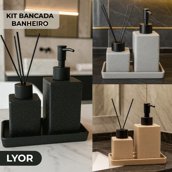 Conjunto 3 Peças para Bancada Banheiro em Cerâmica - Granilite Quadratto Luxo Lyor