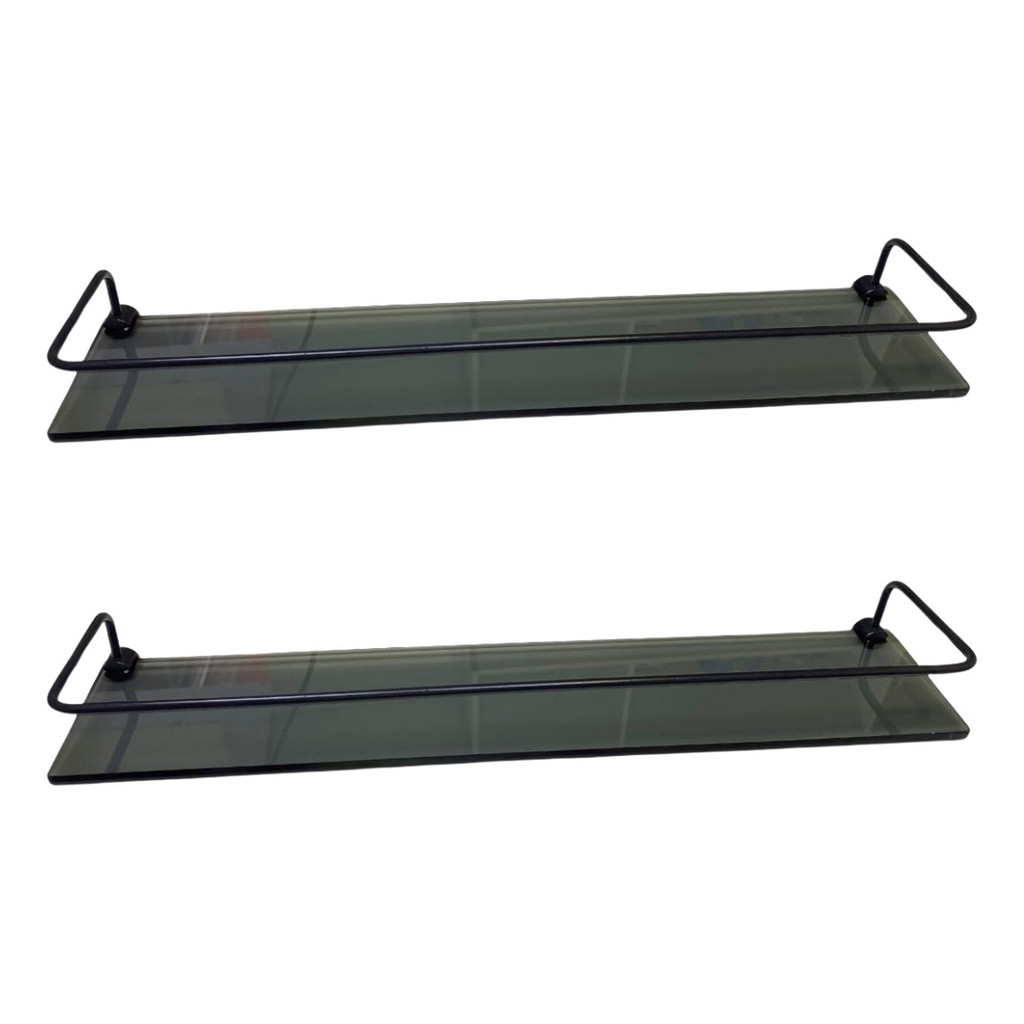 Comprar na ShopeeKit - 2 Porta Shampoo Com Grade Preta - Vidro Fumê - 50x10cm