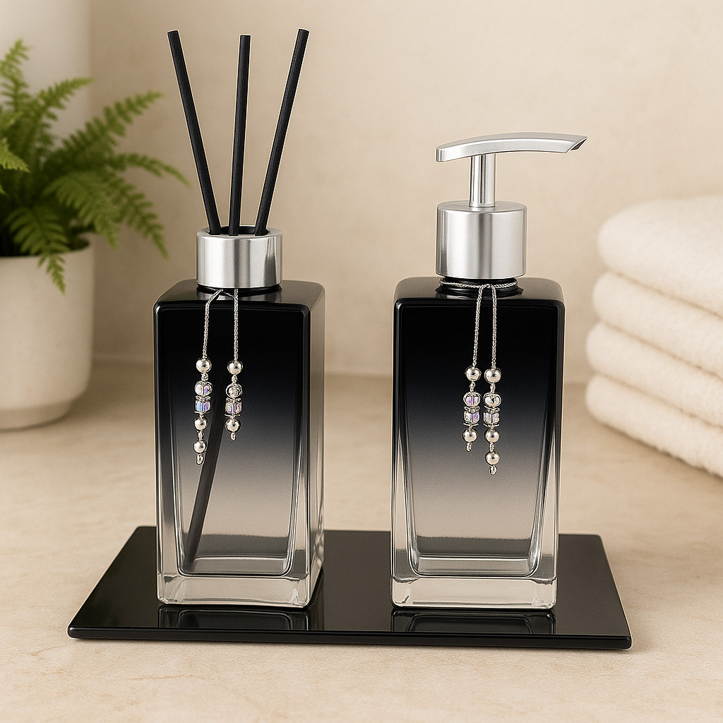 Comprar na ShopeeKit Lavabo Sabonete Líquido e Difusor De Ambientes Squere De Vidro Com Bandeja