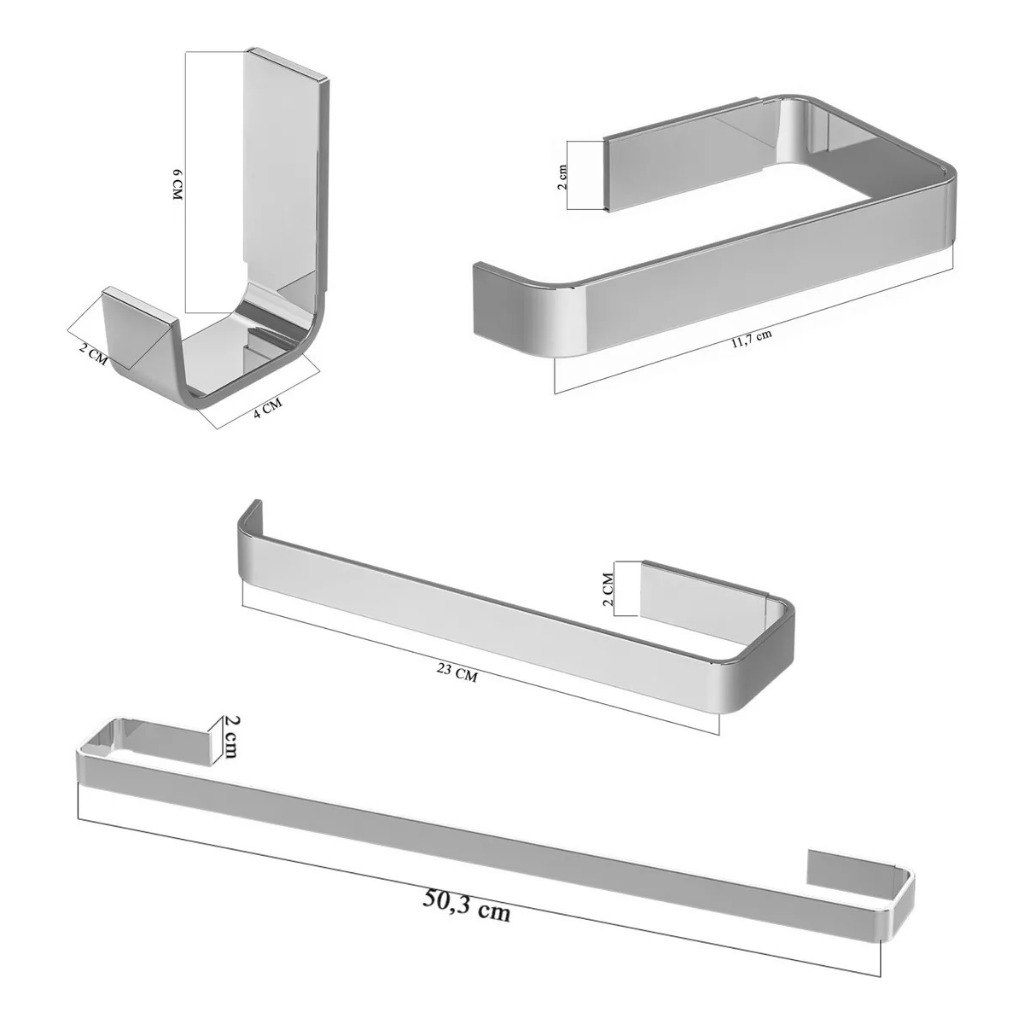 Comprar na ShopeeKit Acessorios Para Banheiro Quadrado 4 Peças Cromado Suporte Toalhas e Papel GANCHO