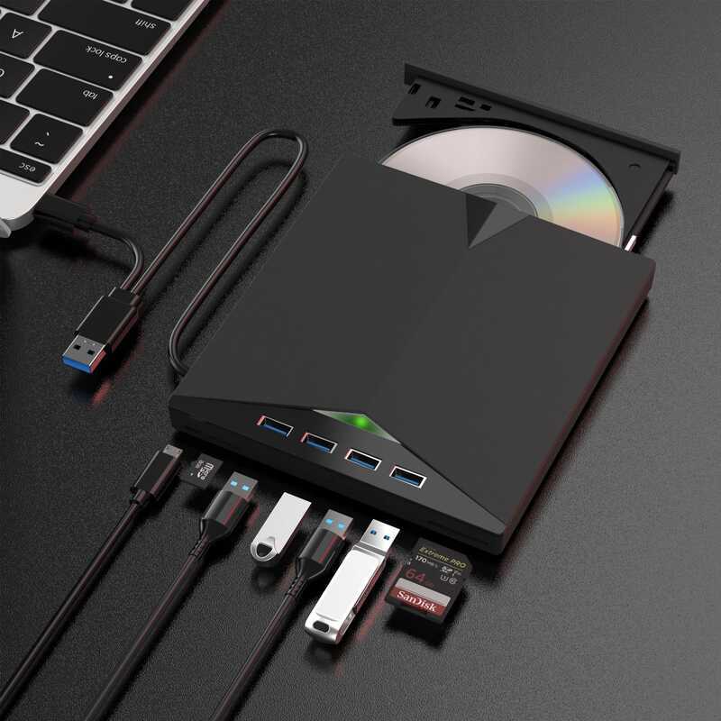 Gravador de gravação multifuncional 6 em 1 USB3.0 Tipo-c Notebook Universal Computer Player CD Unidade óptica externa