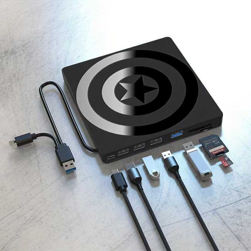 Gravador de gravação de DVD externo multifuncional 8 em 1 USB + C de toque privado fogo de comércio exterior