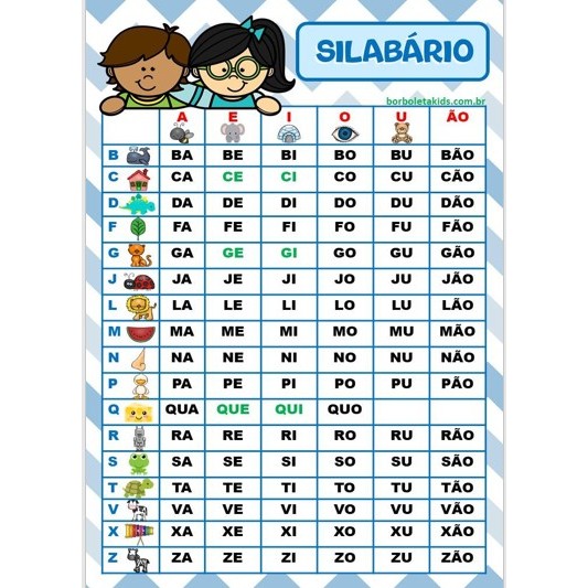 Silabário Plastificado Simples, Complexo, Ilustrado, Alfabeto Fônico