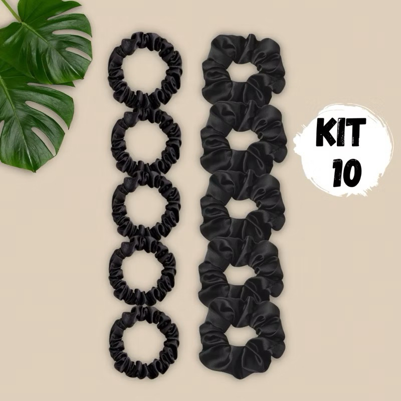 Comprar na Shopeekit de xuxinha de cetim, scrunchie de cabelo preta, nude, marrom, fina e grossa tradicional, pequena