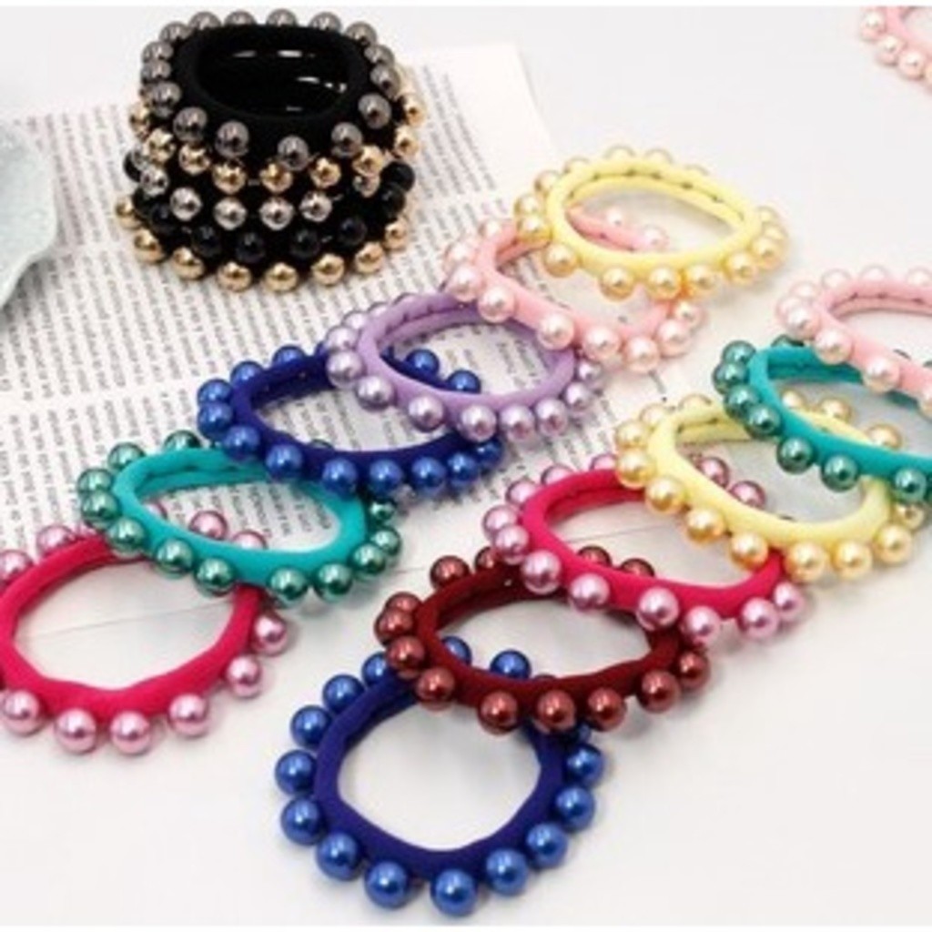Comprar na ShopeeANA1108 KIT 24unidades Elástico de cabelo Com Pérolas branco/preto acessorios xuxinha para cabelo