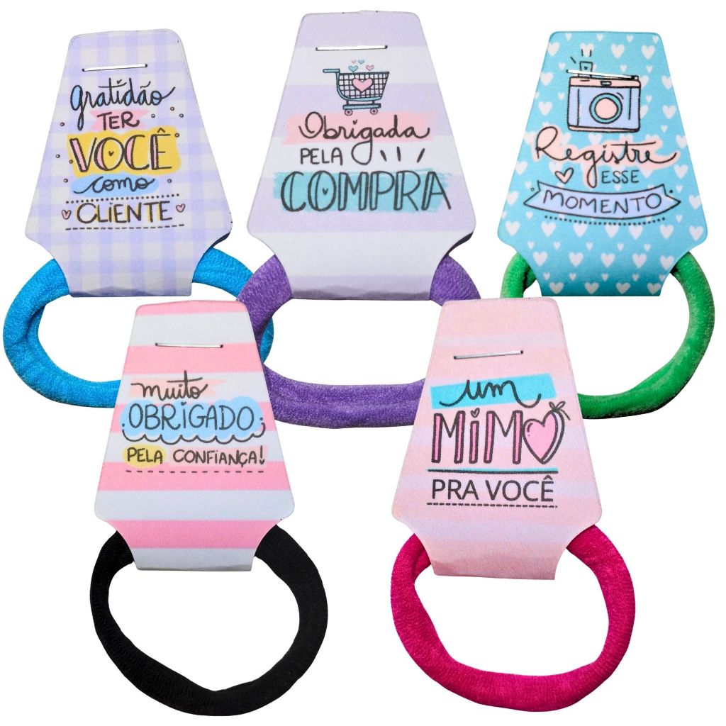 Comprar na Shopee50 amarradores de cabelo com tag com frase Brinde para Cliente | Mimo para Pedido | Tag Obrigado pela Compra xuxinha
