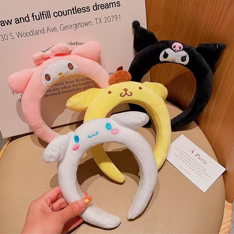 Cute Argola De Pêlos De Desenho Animado Sanrio Melody Canela Cão Lavando O Rosto Menina Pelúcia Com Aba Larga Tiara