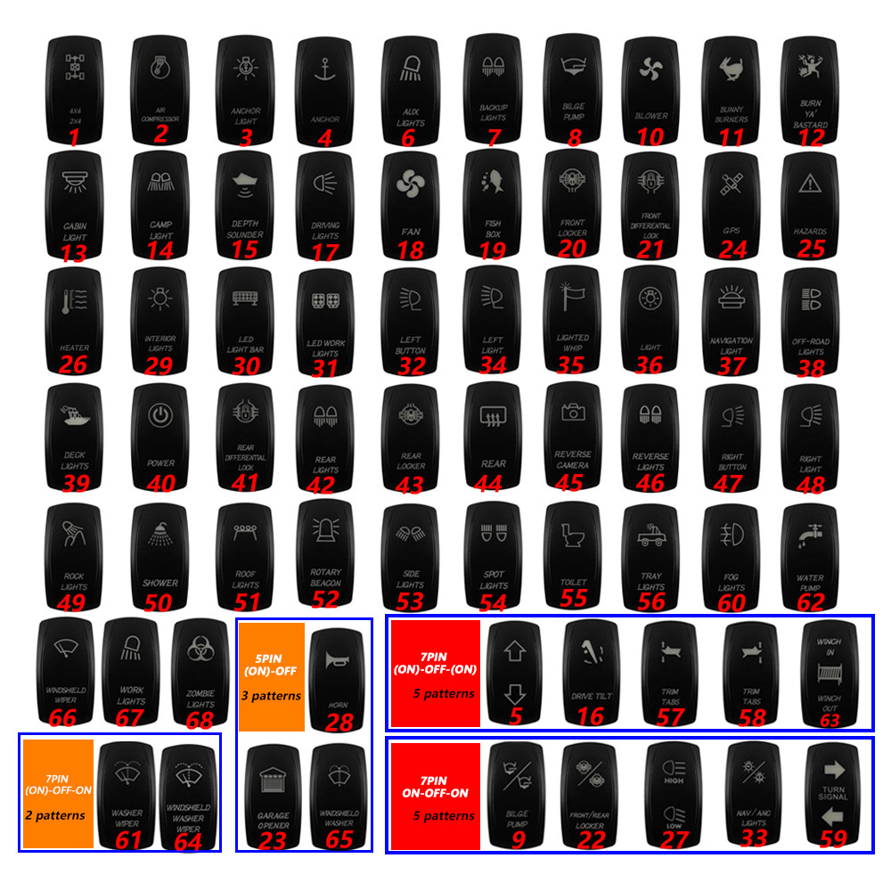 Interruptor de Balanço Marinho LED Azul 12V 24V Barra de Luz LED Interruptor de Troca para Carro Barco RV Trailer ATV