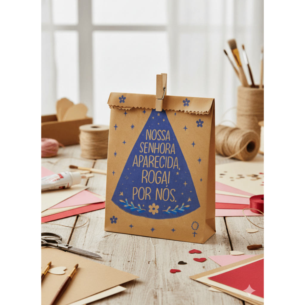 Comprar na ShopeeSaquinho Kraft Decorado 14x10cm – Nossa Senhora Aparecida