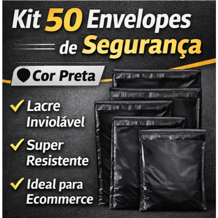 Comprar na ShopeeKit 50 Envelope de Segurança Preto para Envio | Lacre Inviolável | Embalagem Ecommerce