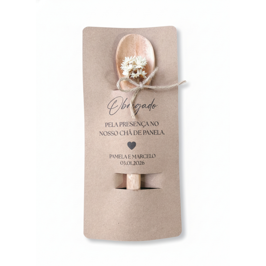 Comprar na ShopeeLembranças p/ chá de panela em kraft e colher de madeira personalizada para chá de panela, cozinha, casa nova, apê, bar