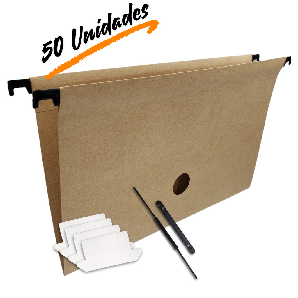 Pasta Suspensa Para Arquivo Kraft Completa 200Gm 50 Unidades Com Acessórios