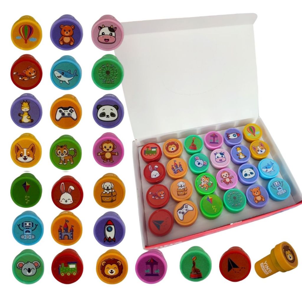 Kit Carimbos Infantil Pedagógico Fantasia e Aniversario 24 Unidades Tinta Colorido Exterior Colorido