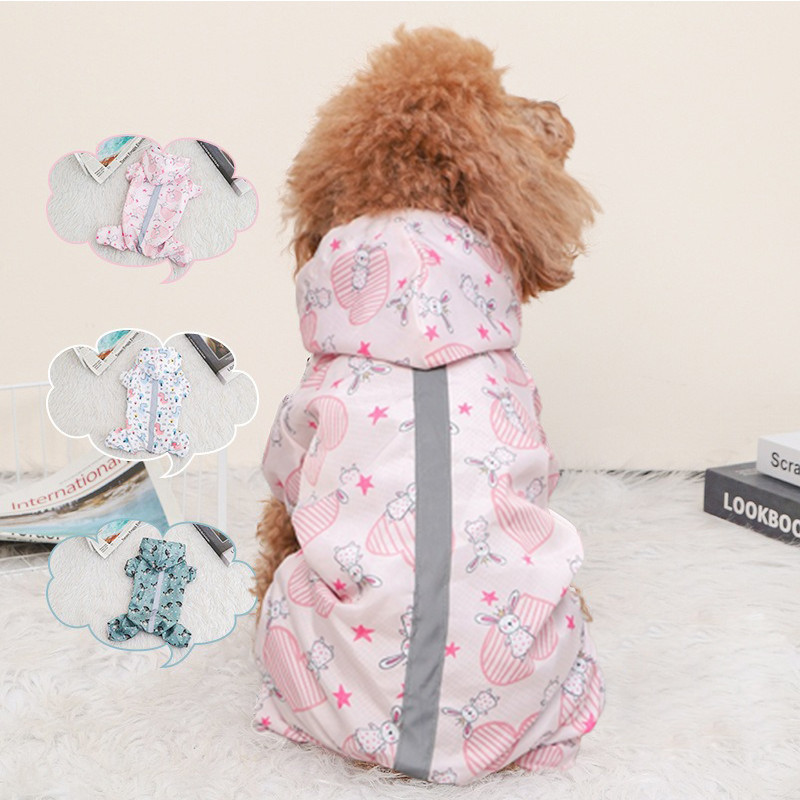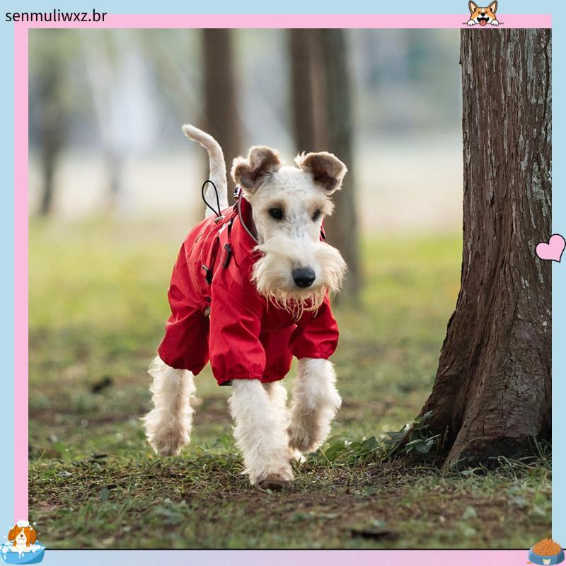 Capa de chuva para cães, estilo de quatro patas, impermeável, cobertura total, capa de chuva de pelúcia, roupa para dias