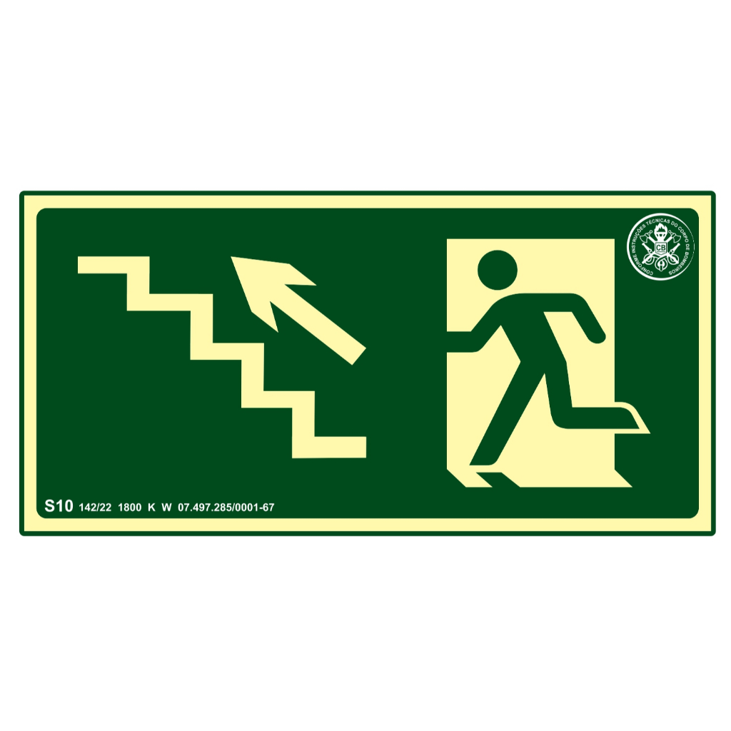 Kit 5 e 10 Placas de Sinalização Fotoluminescente Sobe Escada Esquerda S10 / Sobe Escada Direita S11