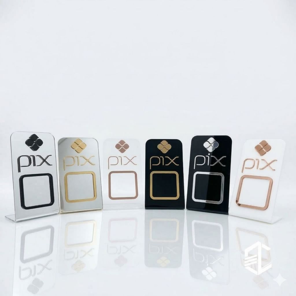 Comprar na ShopeePlaca Pix 3 em 1 WhatsApp e Instagram Display de Mesa Balcão Em Acrílico Espelhado