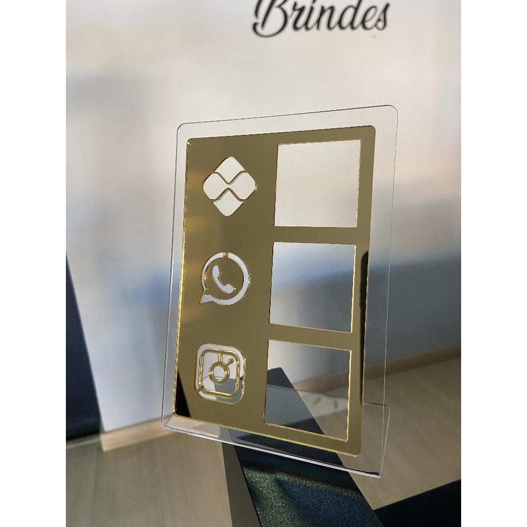 Comprar na ShopeePlaca QR 3 em 1 Code Pix Instagram whats Branco Dourado Mesa Balção Loja