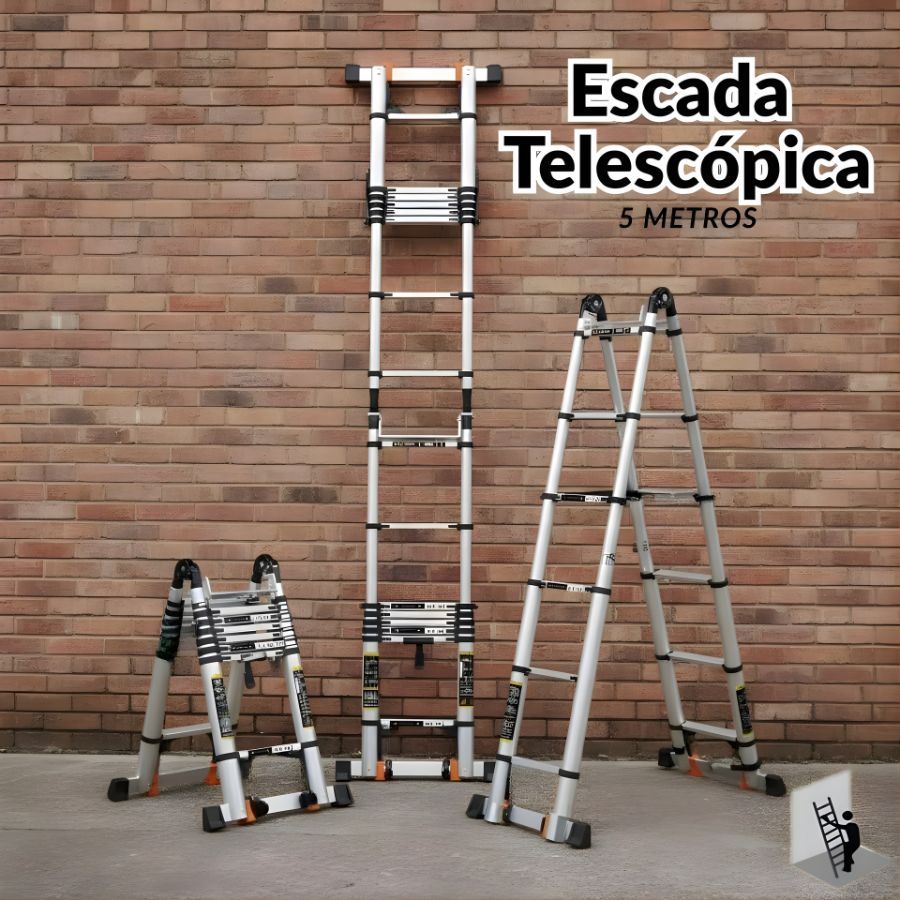 Escada Telescópica Multifuncional 5 Metros Alumínio Portatil Leve Extensiva Dobravel
