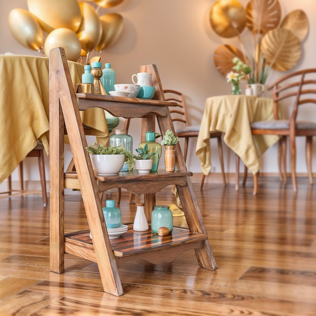 Comprar na ShopeeEscada Fixa Pequena Rustica Madeira Pinus Decoração Festa Escadinha De Doces