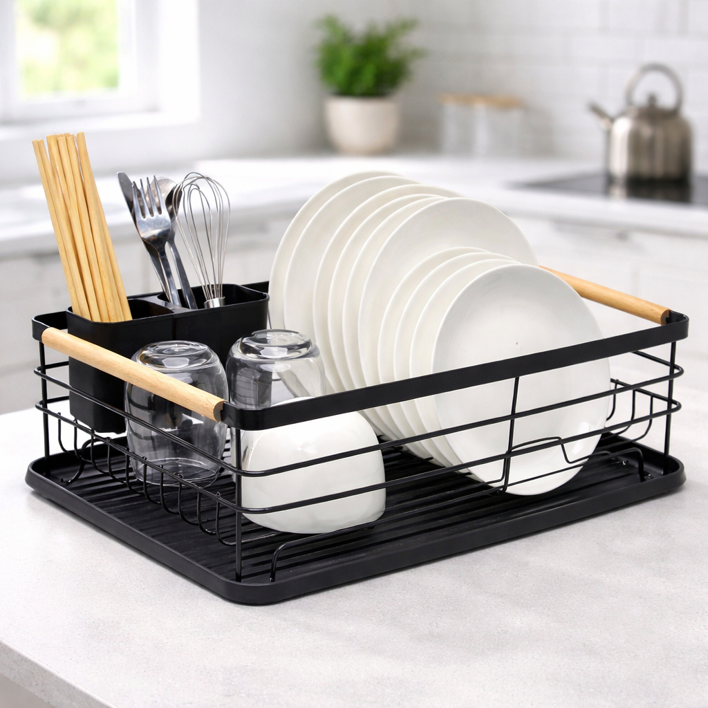 Comprar na ShopeeRack Preto Escorredor Organizador de Louças Moderno Pratico Bandeja Bamboo Porta Talheres