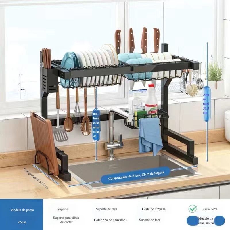 Comprar na ShopeeCozinha Escorredor De Louça Suspenso Bancada Autossustentável 65cm