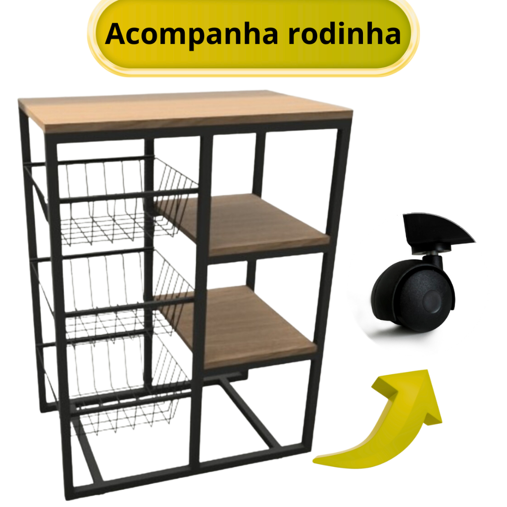 Comprar na ShopeeFruteira 3 Cestos Suporte Microondas Bebedouro Rodinha Preto Branco