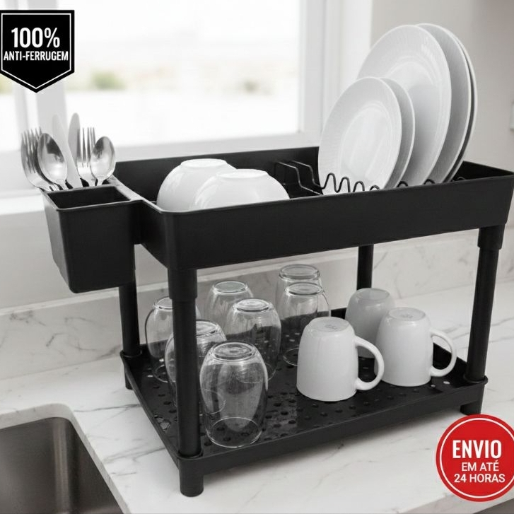 Comprar na ShopeeEscorredor Preto de Louça Prato Pia Com Porta Copos E Talher Florença