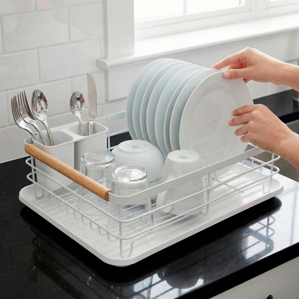 Comprar na ShopeeEscorredor de Louças Premium com Dreno Integrado | Porta Pratos, Copos e Talheres | Design Moderno
