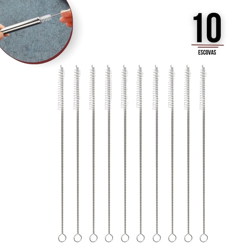 Kit 10 Escovas P/ Limpeza Profunda De Canudo Escovinha Inox Ecológica Higiênica Cerda Macia Flexível