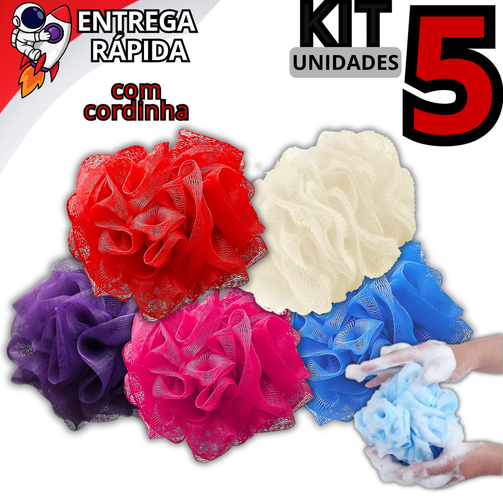Comprar na ShopeeKit 1, 3 ou 5 Bucha Esponja de Banho Esfoliante Nylon Macia com Cordinha