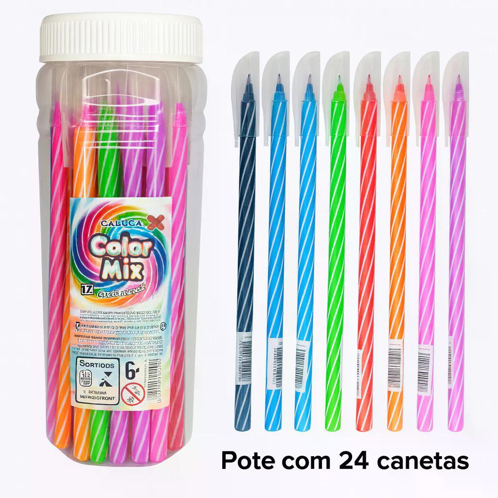 Comprar na ShopeeCaneta Esferográfica 0,7mm Pote 24 Unidades Cores Variadas Preta, Azul, Rosa, Roxa, Coloridas, Sortidas - Make+