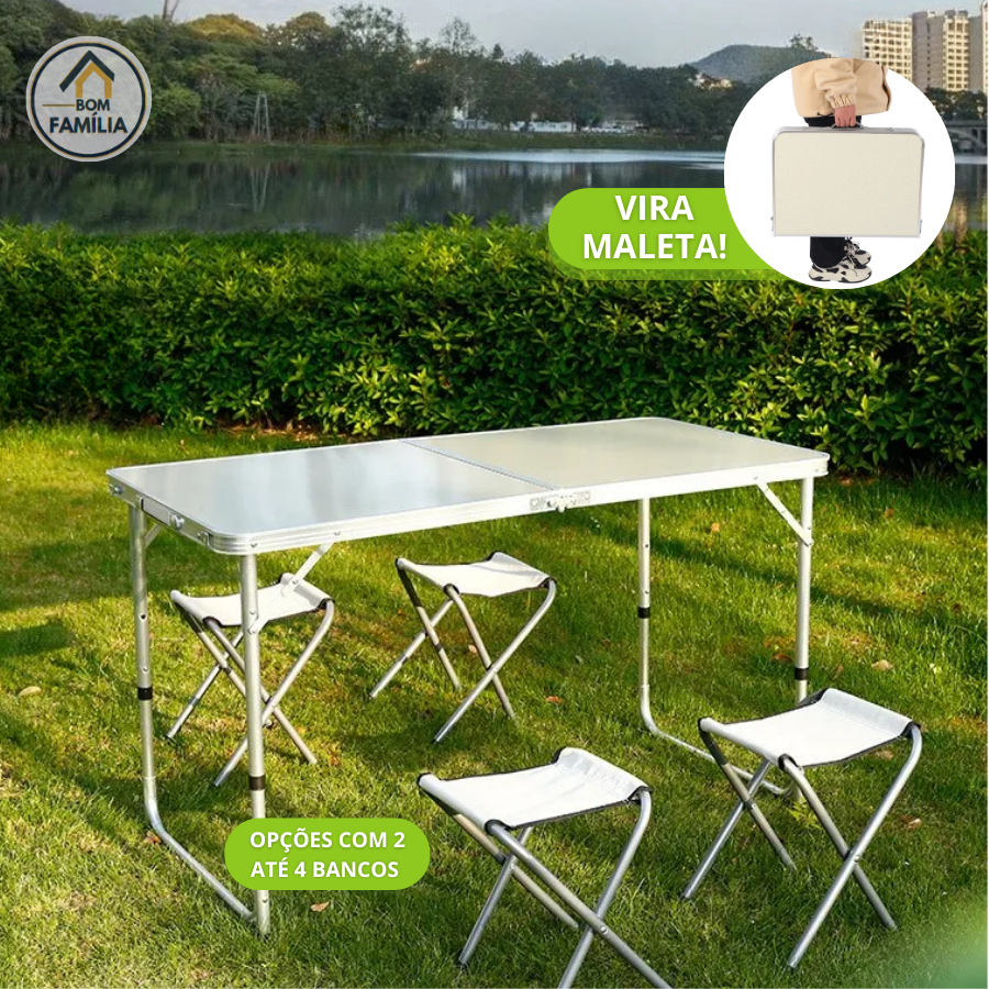 Comprar na ShopeeMesa Dobrável Portátil 3 Tamanhos Vira Maleta Com Alça Resistente e Compacta Opção com Bancos