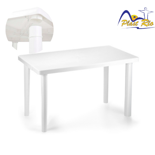 Mesa Plástica Grande 6 Lugares Desmontável Branca Retangular Plasnew 120x70CM Reforçada Varanda