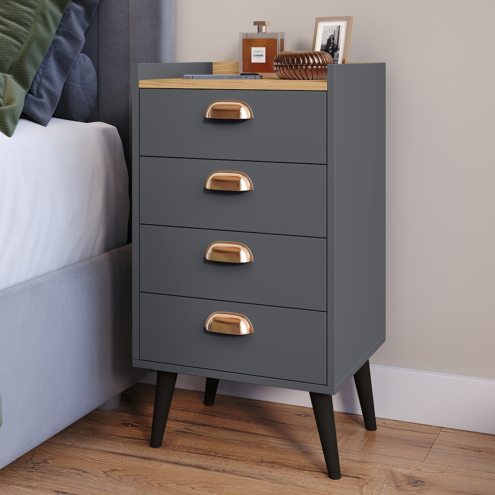 Mesa de Cabeceira com 4 Gavetas Gaveteiro Monet Puxadores Concha Pés em PVc Antiumidade