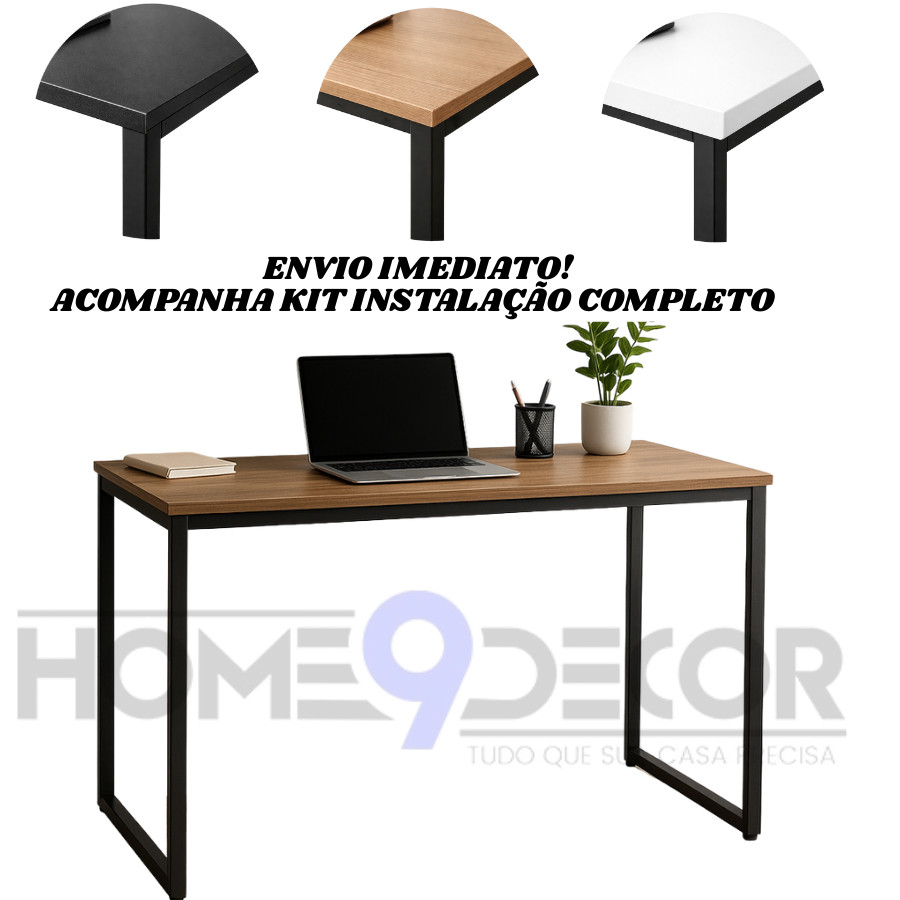 Comprar na ShopeeKit Mesa Escrivaninha Industrial c/ Prateleira Dupla Suspensa em Madeira e Metalon
