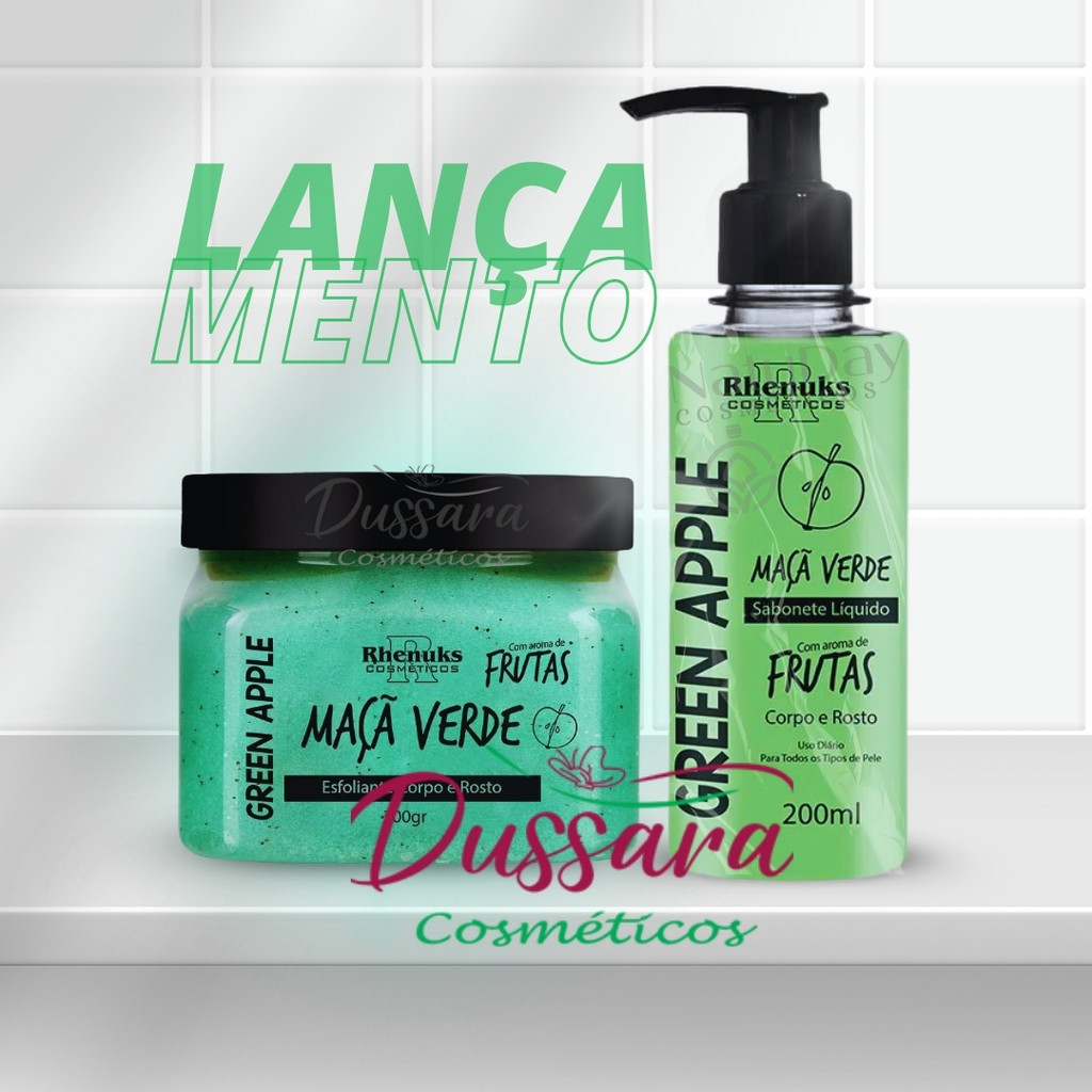 Kit Esfoliante + Sabonete Líquido Rosto e Corpo | Maça Verde | Rhenuks