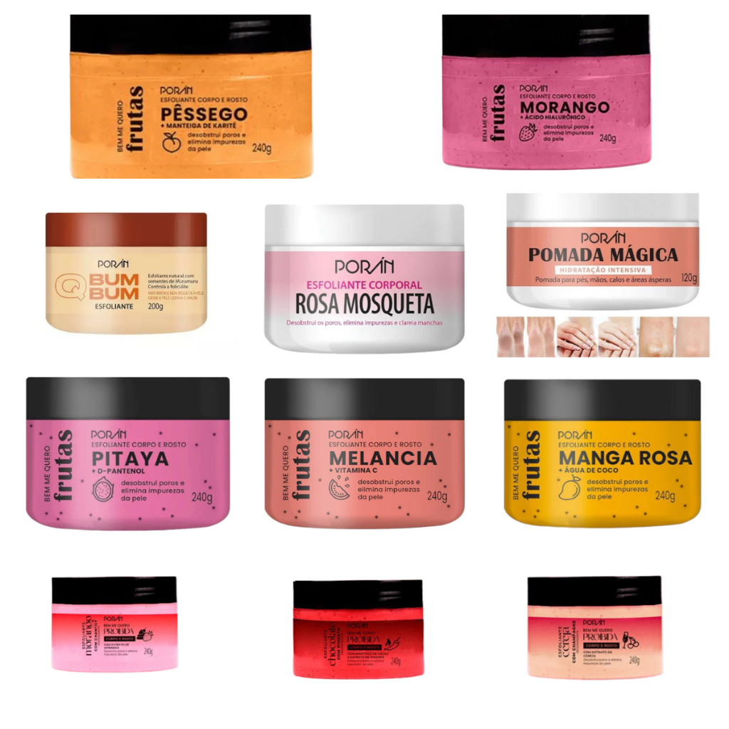 Comprar na ShopeeKit Spa Banho Cuidados Diários Rosto e Corpo Porán - Esfoliante, Hidratante, Sabonete e Body Splash