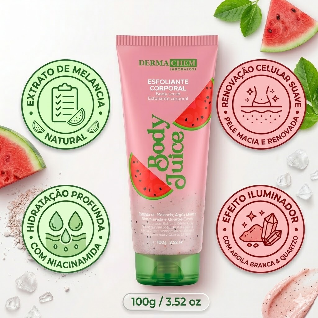 Esfoliante Corporal Melancia Dermachem Extrato - Body Juice 100g Ajuda na Remoção de Células Mortas