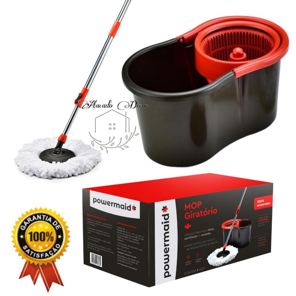 Comprar na ShopeeMop Giratório Balde Cesto Inox Limpeza Esfregão 360 Mop Pro Centrifuga Esfregão Microfibra MOP7824 9 Litros
