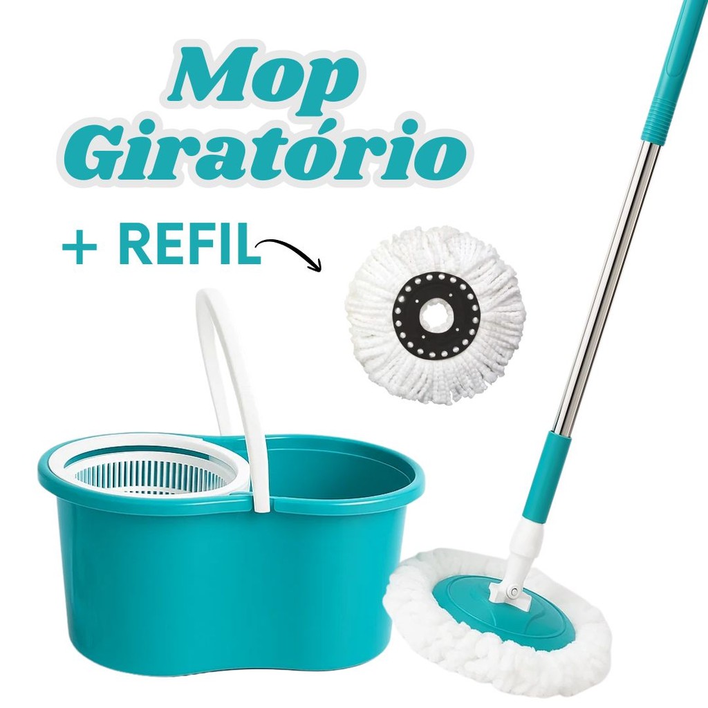 Comprar na ShopeeMop Giratório Esfregão Rodo Para Limpeza Fácil 360° Cabo de Aço - Turquesa