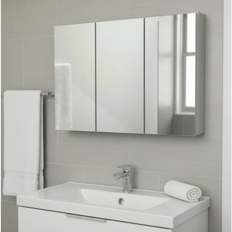Comprar na ShopeeEspelho 80cm para Banheiro Armário 3 Portas com Amortecedor - 100% MDF - MONTADO