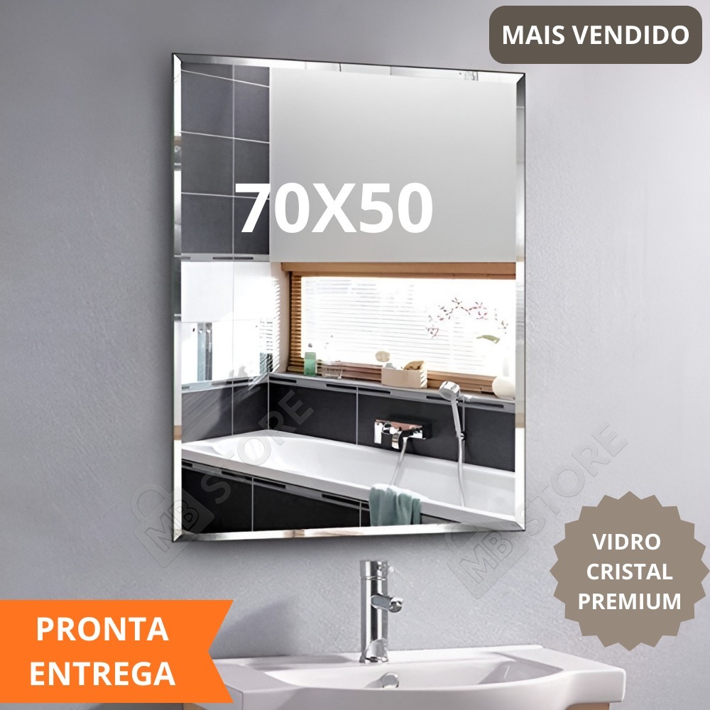 Comprar na ShopeeEspelho Bisotê Decorativo Retangular 80X60 ou 70X50cm Chanfrado 20mm + Kit Instalação para Banheiro Sala e Decoração